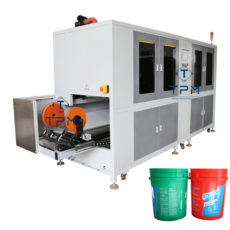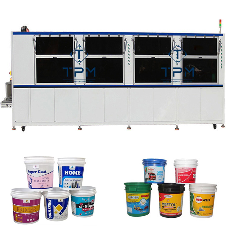 Automatische 3 Kleuren Plastic Metalen Verf Emmer Met Vlam Behandeling Scherm Printer Drukmachine