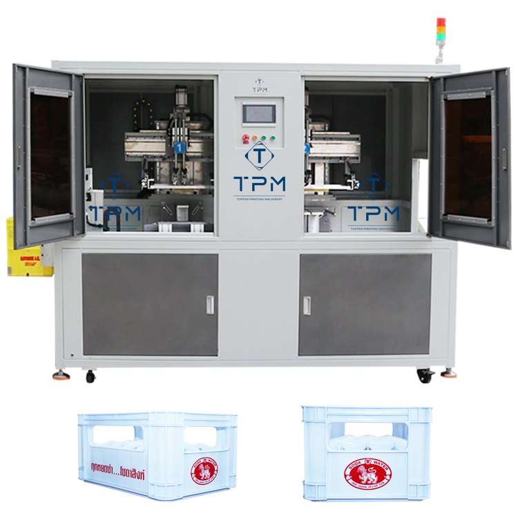 Automatische Micro-Registratie Plastic Pe Opbergdoos Bierkrat Ooievaar Roterende Zeefdrukmachine
